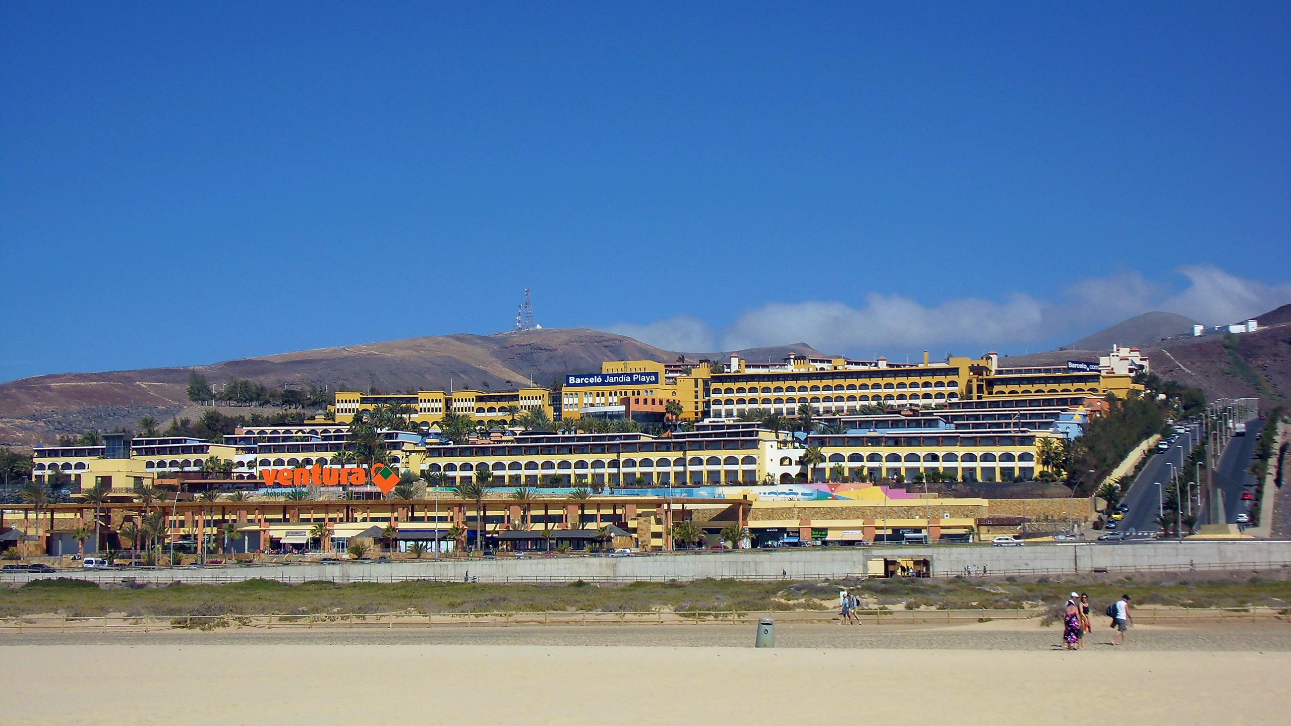Blick in die Hotelanlage vom 4*-Hotel „Barceló Jandia Mar“ in Playa de Jandia, das 2006 eröffnet wurde.