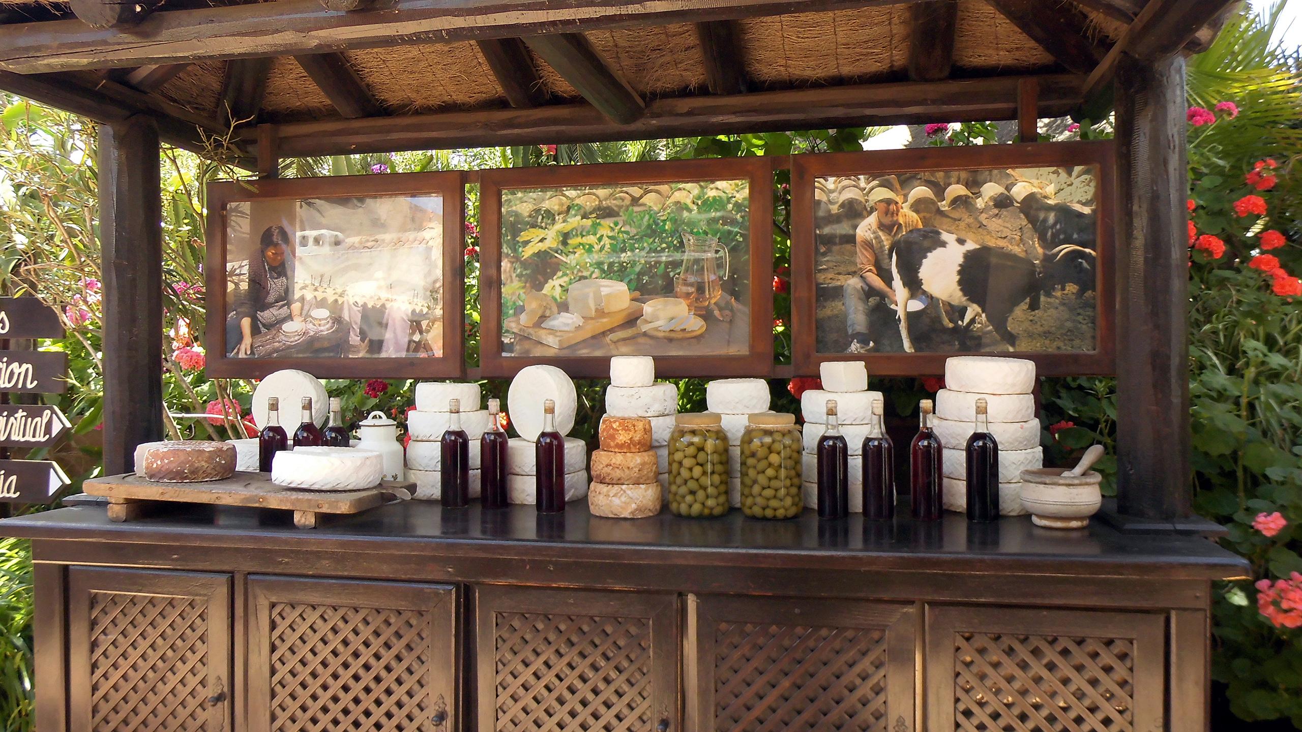 Hier kann man die „Heiligtümer“ der Inselbewohner kosten und kaufen. Ganz milder Ziegen-käse, gutes Olivenöl, eingelegte Oliven und verschiedene leckere Mojo-Soßen.