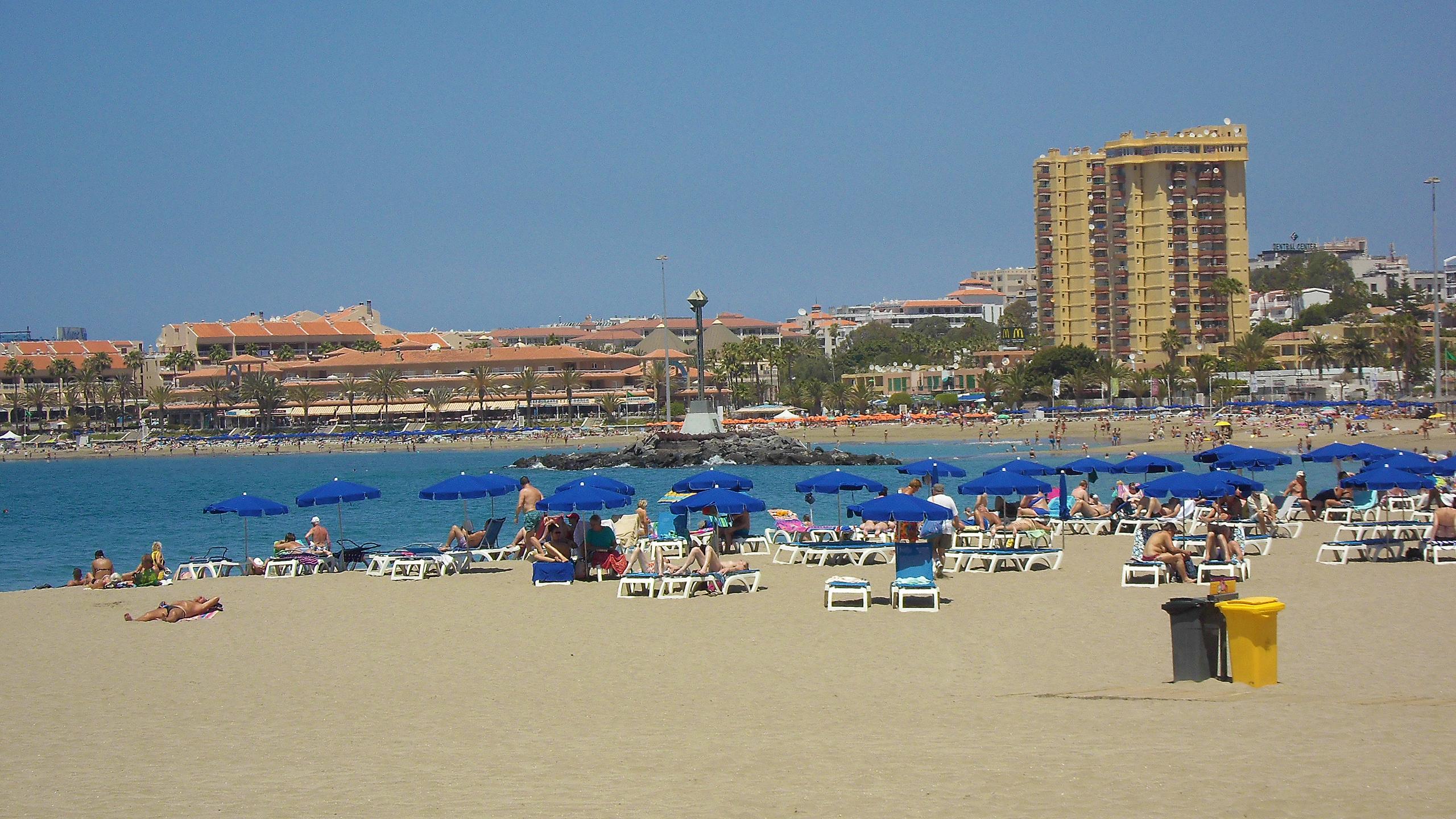 Der Badestrand  von Los Cristianos in Richtung Playa de la Americas. Alles in den letzten Jahren neu entstanden. Aber auch Kolumbus hat hier seine Entdeckungsreise  gestartet.
