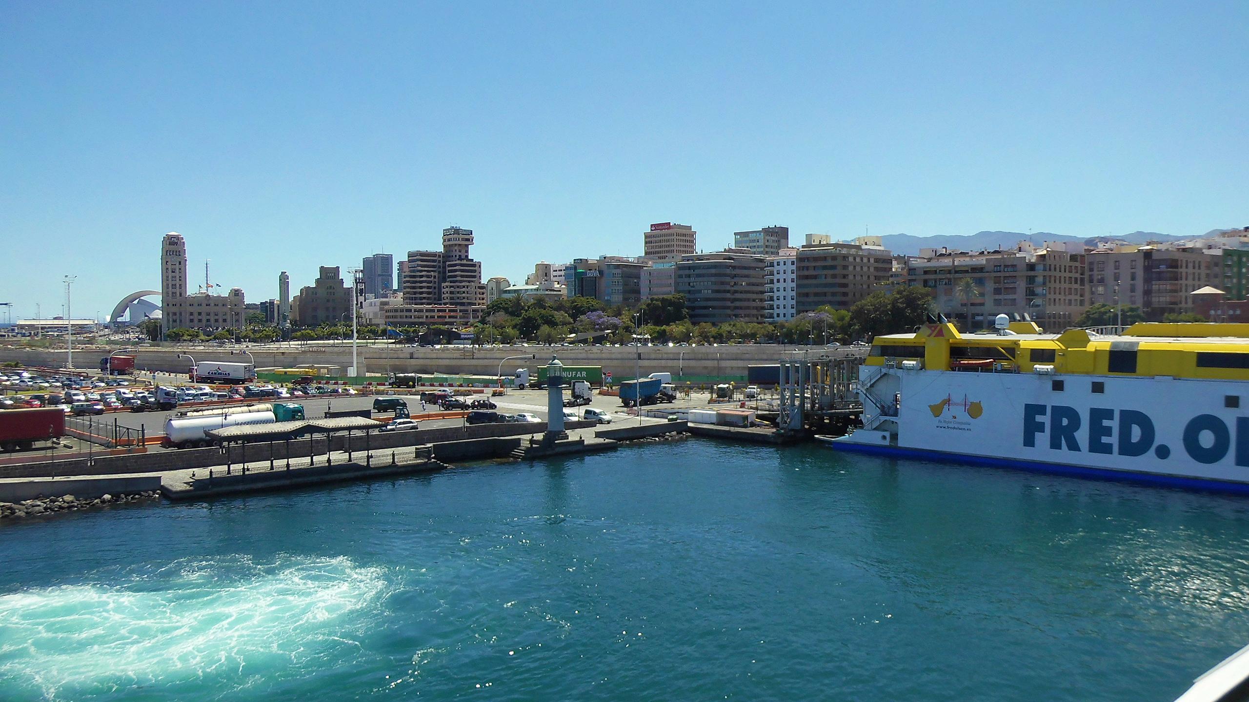 Die Hafenstadt Santa Cruz de Tenerife vom Schiff aus gesehen. Eine moderne Stadt mit vielen Sehenswürdigkeiten und hoch interessanten Bauten.