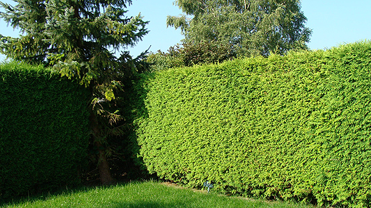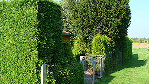 die neue Hecke wie eine Eins und wird